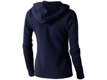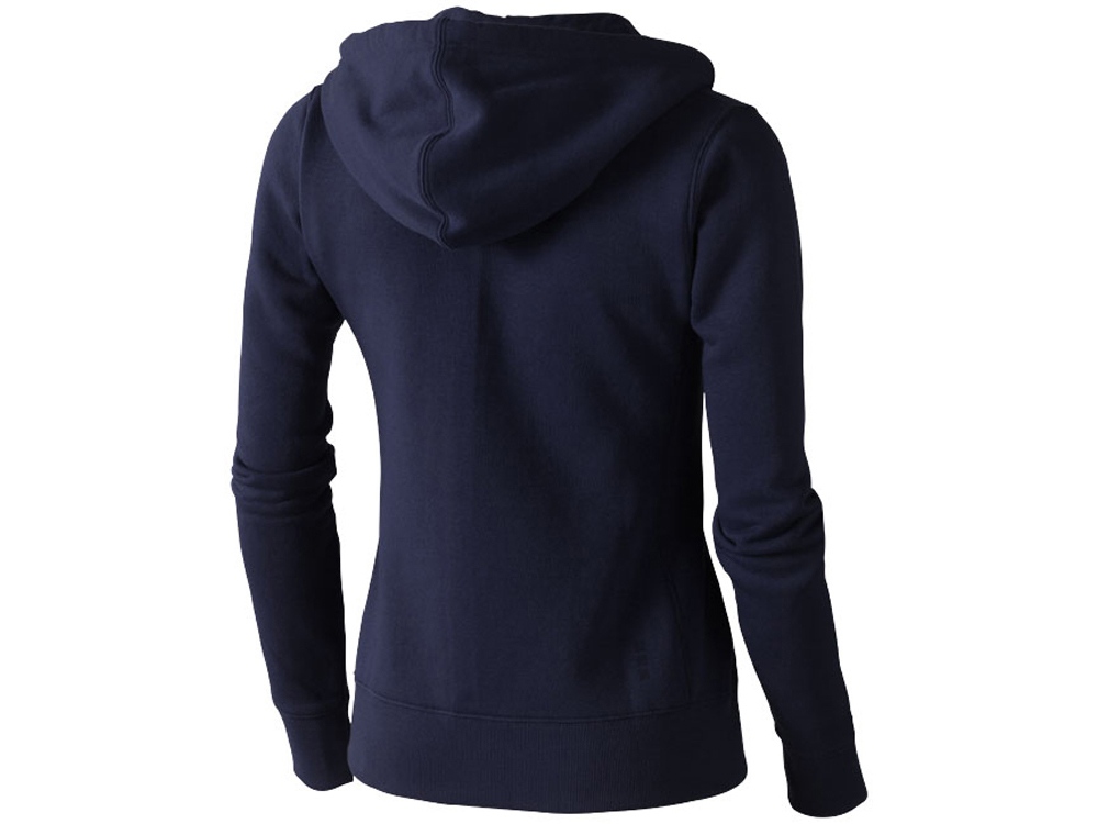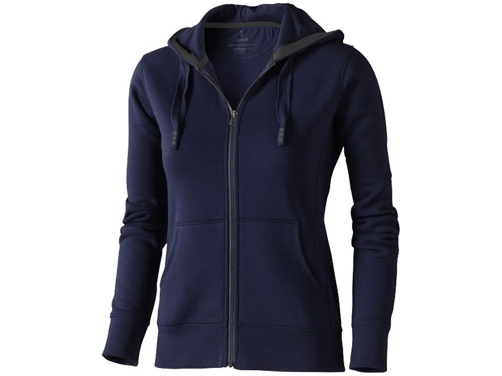 Женский свитер Arora с капюшоном и застежкой-молнией на всю длину. резинка 2х2 на боковых вставках, поясе и манжетах. Карман кенгуру. Мужская и женская модели с завязками на капюшоне. Подкладка внутри капюшона. Подкладка на полумесяце. Атласная лента внутри горловины. Контрастный цвет внутри капюшона. Принт лого сзади в тон изделия. Серебристые люверсы с лого. Трикотаж: 80% хлопок и 20% полиэстер, чесаная внутренняя сторона. 300 г/м².