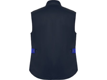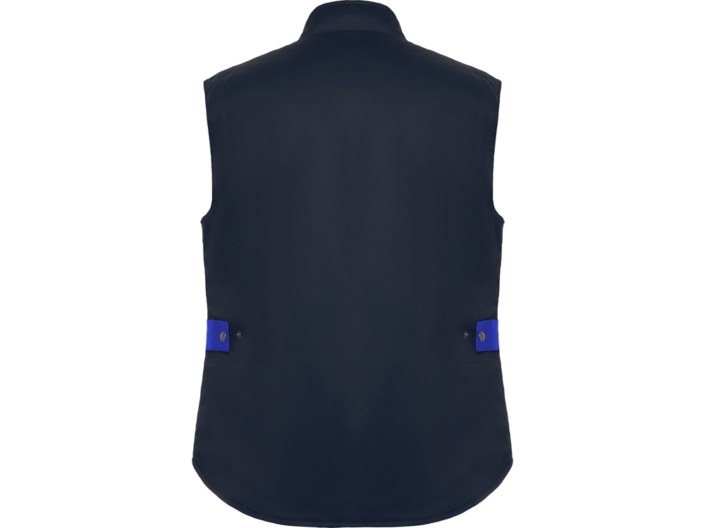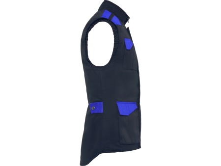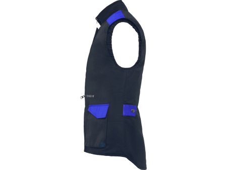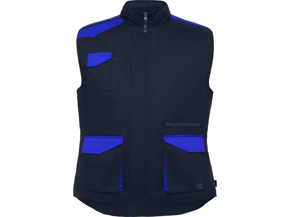 Рабочий жилет в двухцветной комбинации с несколькими карманами и высоким воротником.