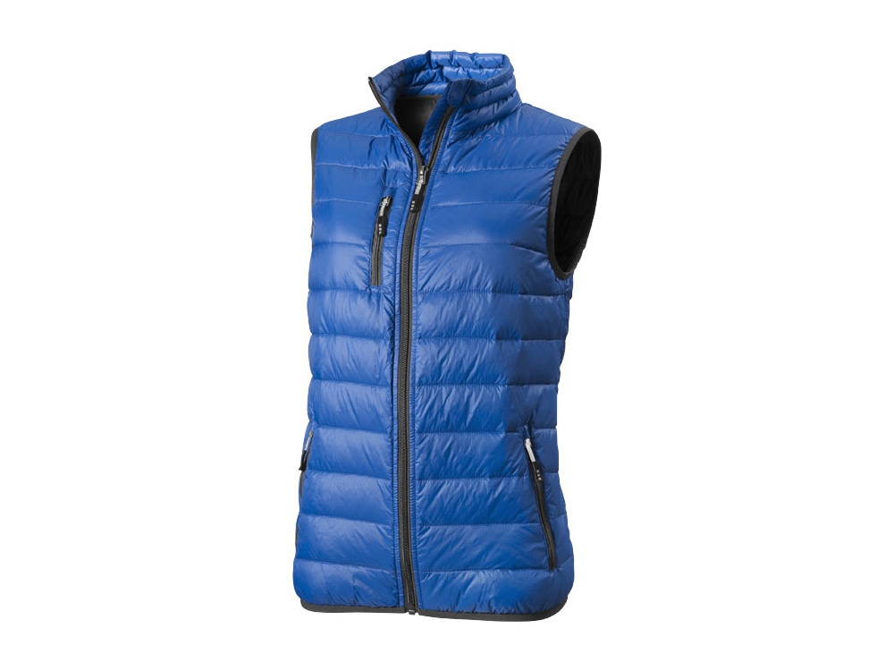Женская пуховая жилетка Fairview. Стандартный покрой. Ткань не пропускает пух. Карманы для рук и нагрудный на молнии. Внутренний противоветровой клапан и защита подбородка. Эластичная обшивка внизу и на проймах. Ткань дышащая, ветронепроницаемая и влагоотталкивающая. Отражающий лого сзади. Ремешки на собачку (второй комплект в цвете антрацит). Жилет - версия победителя премии Reddot, куртки Scotia. Ткань из 100% нейлона с матовым и блестящим водоотталкивающим покрытием, 20D. 80% пух и 20% перо.