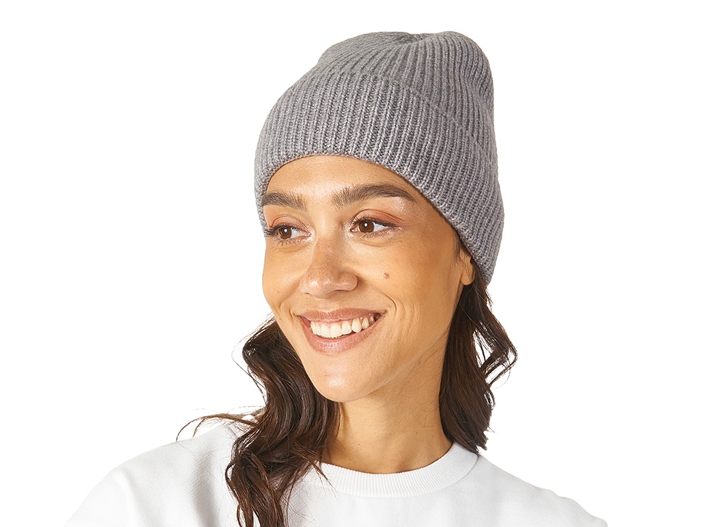Вязаная шапка из мягкого трикотажа в рубчик. Шапка связана рибом 1х1.