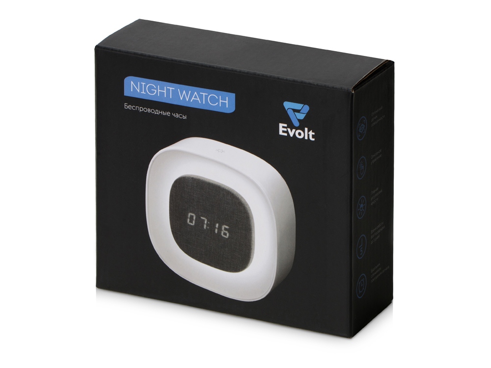 Беспроводные часы с управляемой яркостью подсветки. Для включения подсветки просто прикоснитесь к сенсорной кнопке, расположенной на верхней части Night Watch — очень удобно, если это происходит в темноте: достаточно попасть ладонью по центру верхней грани. Длительным нажатием кнопки регулируется яркость подсветки.