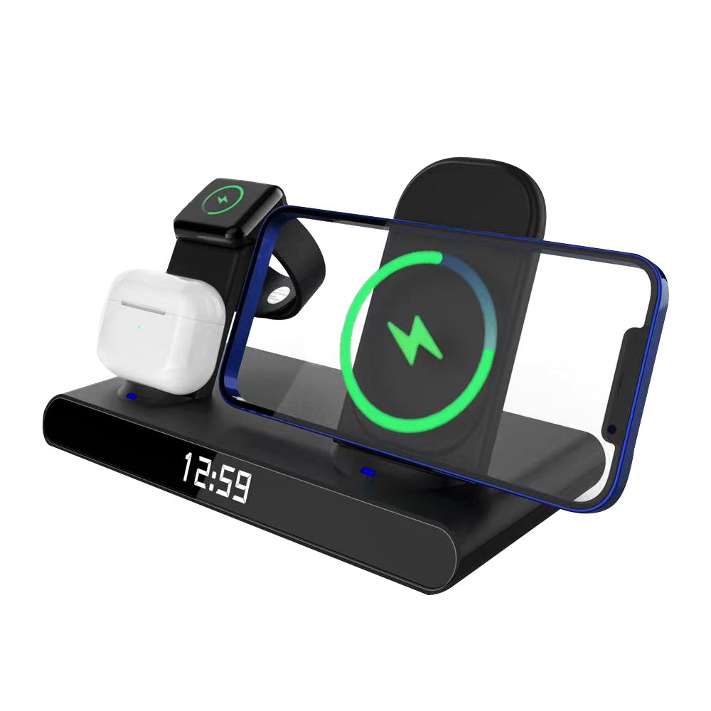 Часы электронные Abbatt мультифункциональные с беспроводной зарядкой. Особенность этих электронных часов заключается в том, что они выполянют функцию не только часов и будильника, а еще с их помощью можно заряжать свои гаджеты. Удобство беспроводной зарядки говорит само за себя - очень комфортно заряжать смартфон, часы и наушники, просто положив их на зарядную станцию, не подключая при этом к ним никаких кабелей. Также есть возможность быстрой зарядки Qi. При беспроводной зарядке устройство меньше подвержено перепадам в сети, чем при подключении к розетке, тем самым увеличивается срок службы аккумулятора. Благодаря интерфейсу Type-C (шнур идёт в комплекте 1м) ваши гаджеты будут заряжаться более эффективно, а главное - одновременно. Вы можете смотреть фильмы, слушать музыку, звонить или отправлять сообщения во время всего процесса зарядки. Входы: 9V/2A 12/2A. Выходы: Беспроводной 10W / 7.5W / 5W / USB 5V / 0.8-1A / Airpod 3W / Apple watch 2.5W