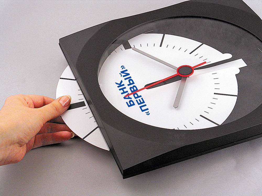 Настенные часы со съемным циферблатом из гибкого пластика диаметром 266 мм – прекрасный офисный аксессуар, который легко может стать частью корпоративной атрибутики. Циферблат часов легко вынимается, и на него можно нанести любое изображение.