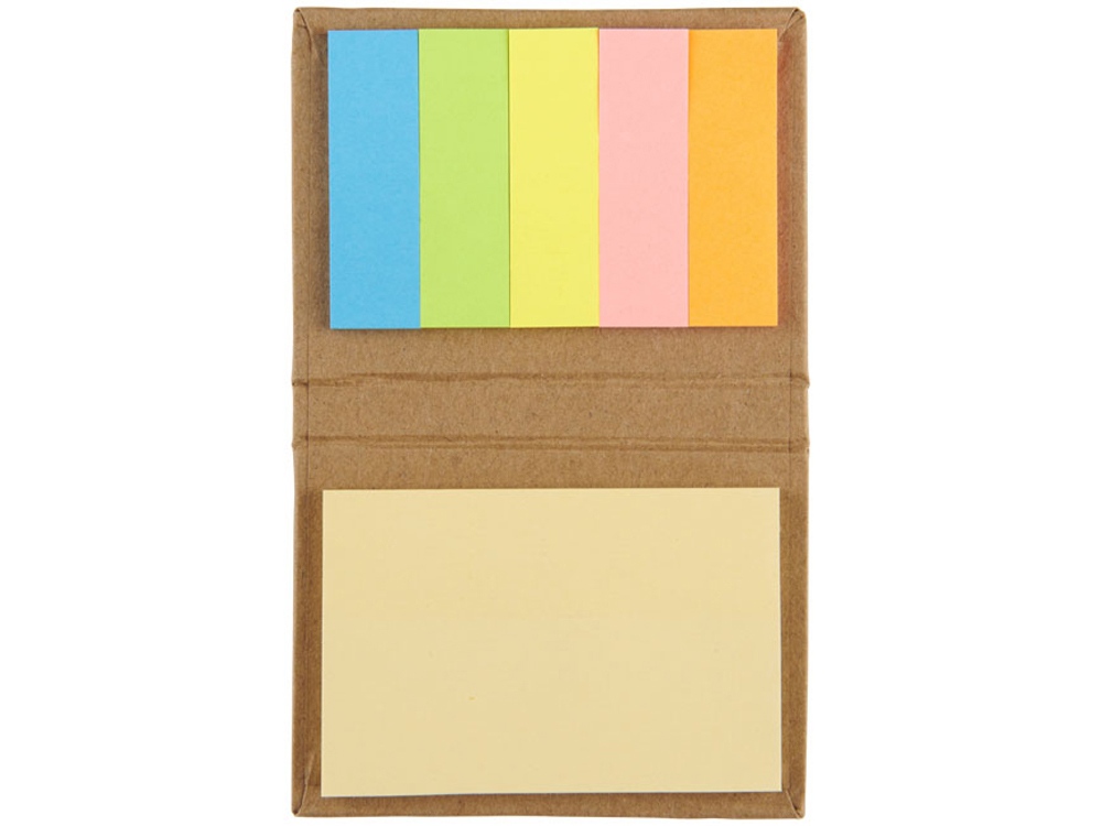 Небольшой комбинированный блокнот. Благодаря удобному размеру этой набор клейких листов будет незаменимой принадлежностью на любом столе! В твердой обложке размещены ярлыки для страниц пяти ярких цветов и набор клейких листов. Бумага.