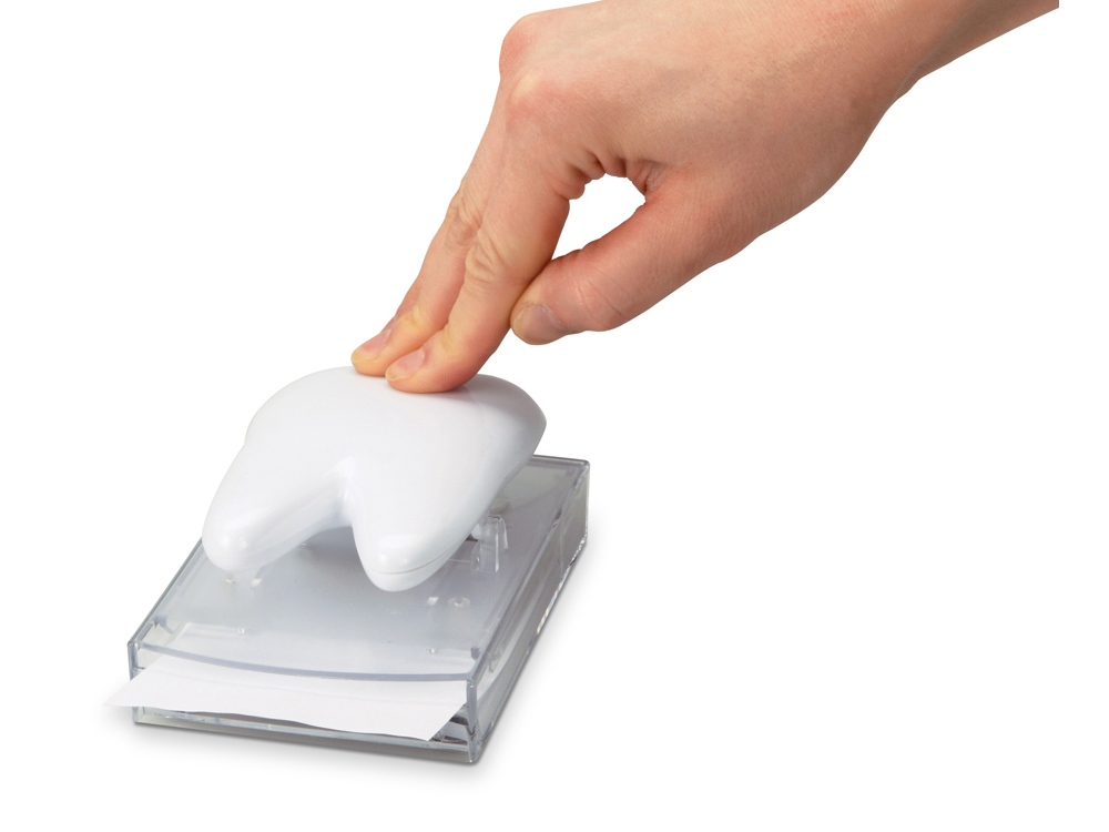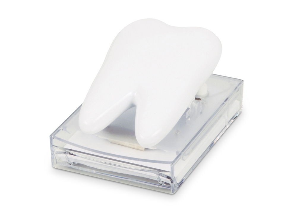 Оригинальный диспенсер в форме зуба отлично впишется в интерьер. При нажатии диспенсер плавно и аккуратно подает бумагу. Отличный сувенир для работников медицинской сферы деятельности.