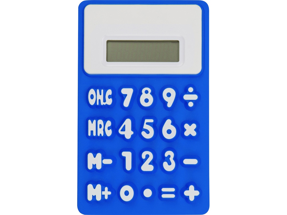 Гибкий калькулятор Splitz. Гибкий 8-разрядный калькулятор с белой отделкой, рельефными клавишами и функцией памяти. Батарейка включена в комплект. Силикон.