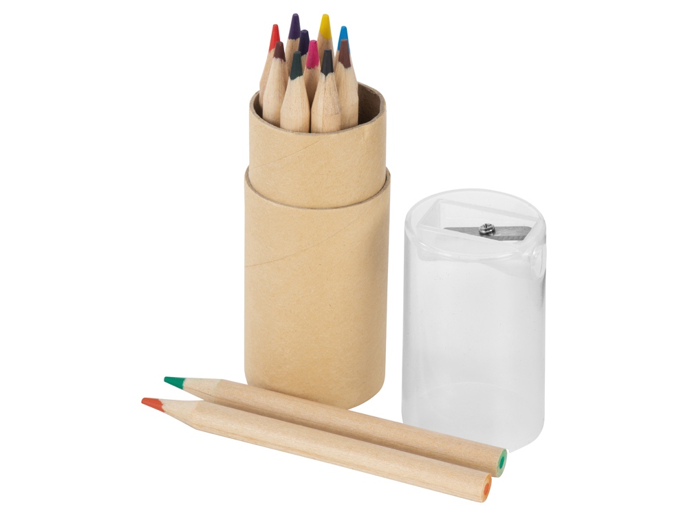 Набор из 12 маленьких карандашей в картонном стакане с точилкой.