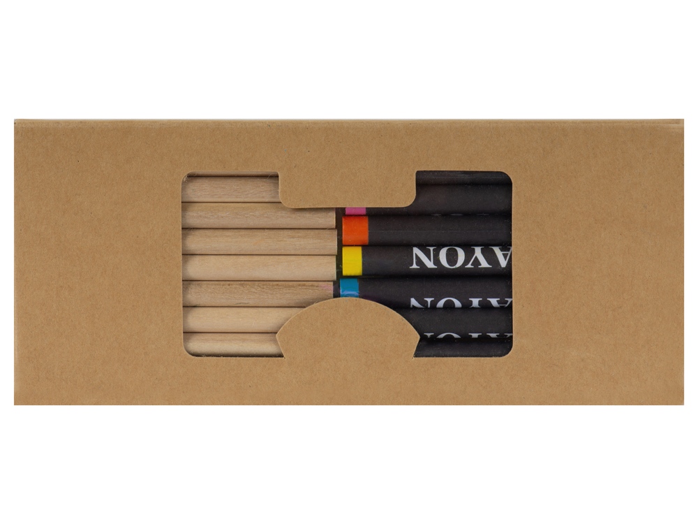 Набор из 19 карандашей. 9 цветных восковых карандашей и 10 цветных карандашей в картонной коробке с пластиковым окошком.