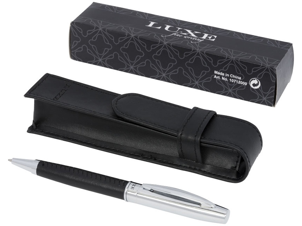 Подарочный набор Scherzo. Эксклюзивная шариковая ручка с обтянутым кожаным материалом корпусом и чехлом из искусственной кожи, упакованная в подарочную коробку LUXE. Металл и искусственная кожа.