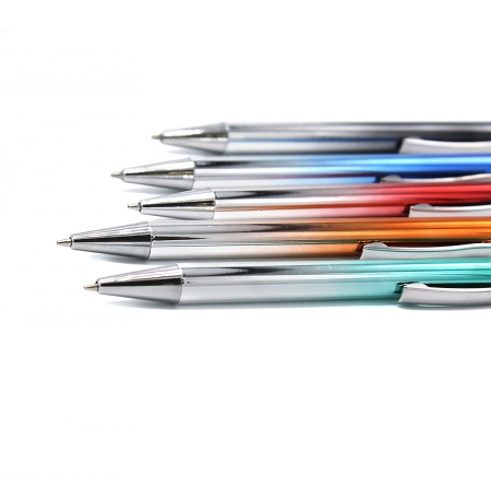 Ослепительный дизайн и нестандартная окраска выделяю эту модель ручки на фоне остальных. Ручка Синергия имеет градиентное покрытие, а на корпусе можно гравировать вашу корпоративную символику. Толщина пишущего узла 1 мм, длина письма рассчитана на 700 м.