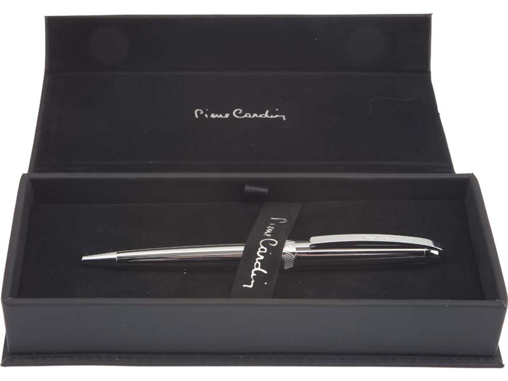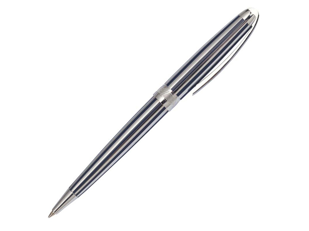 Ручка шариковая PROGRESS с поворотным механизмом и с оригинальной гравировкой в виде чередующихся полос синего лака и хрома по всему корпусу. Комплектуется одним синим стержнем.