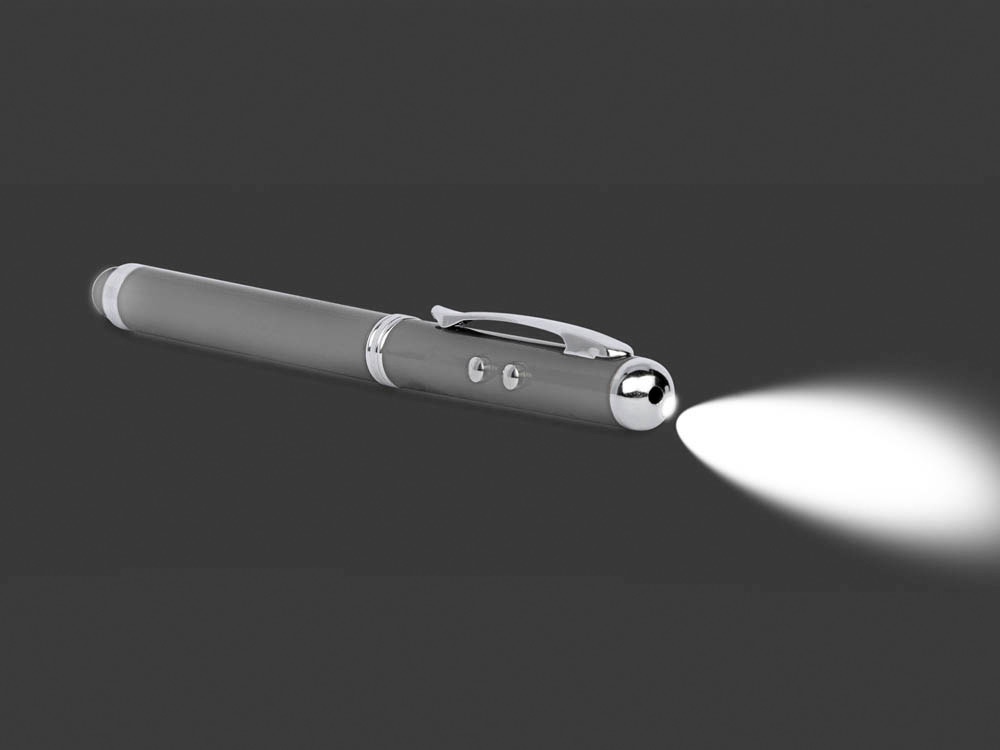 Шариковая ручка может быть не просто письменной принадлежностью. Данная модель ручки многофункциональна - это еще и удобный фонарик, лазерная указка и стилус для сенсорного экрана. Ручка представлена в разных цветах. Можно персонализировать.