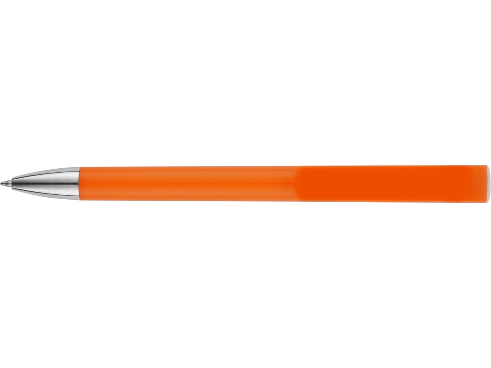 Пластиковая ручка с цветным корпусом и серебристым носиком привлечет внимание своим необычным дизайном: при нажатии на кнопку двигается только часть клипа, а вторая – остается на месте. Из шести расцветок можно выбрать ту, что наилучшим образом подойдет к вашим фирменным цветам.