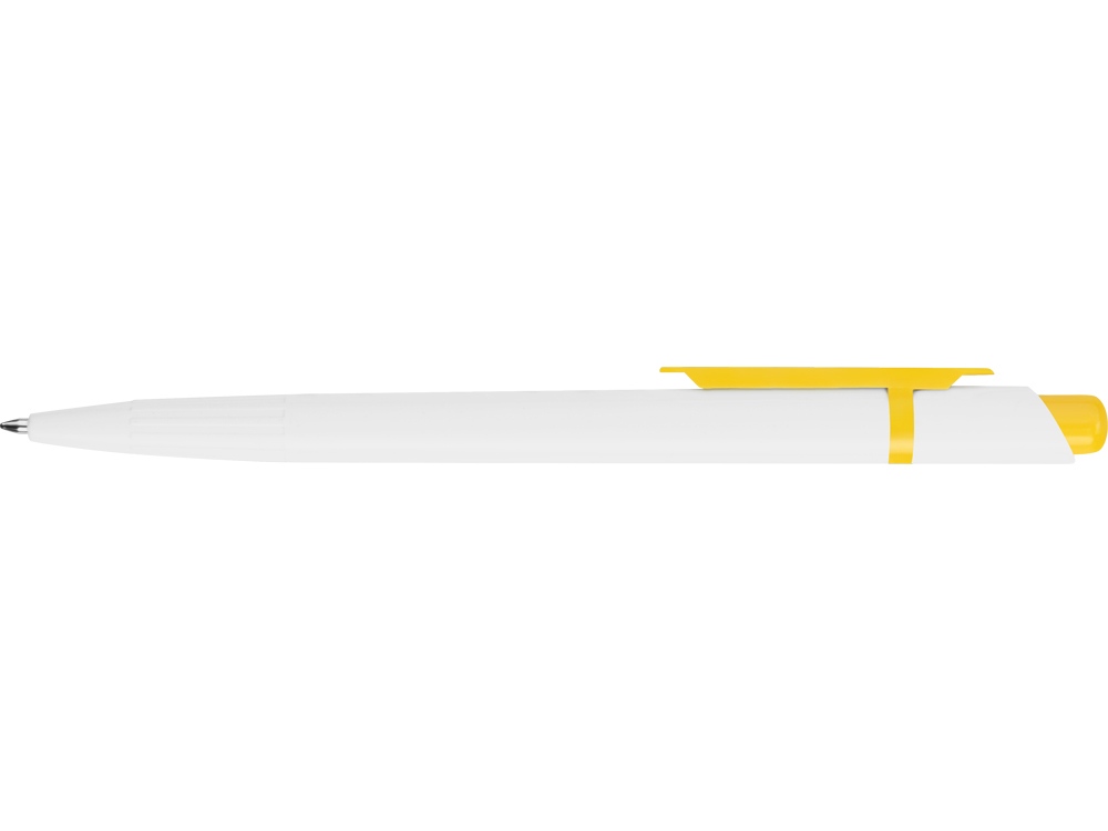 Шариковая ручка Этюд – прекрасный выбор промо-сувенира для презентаций и конференций. Белый пластиковый корпус с цветной вставкой и широким клипом создает большие возможности для персонализации.