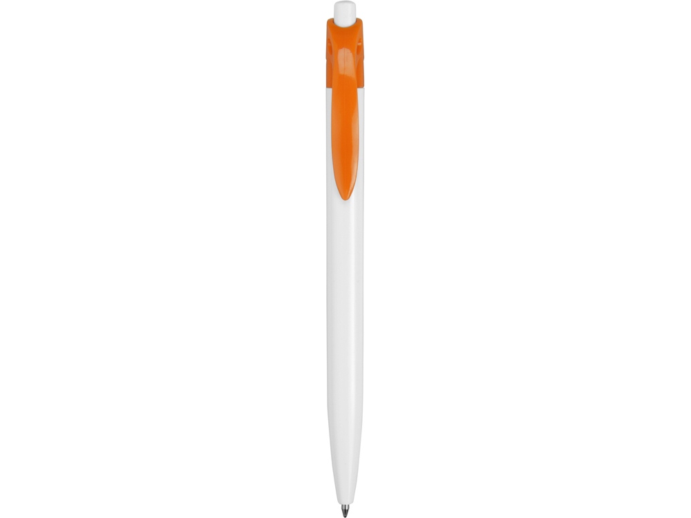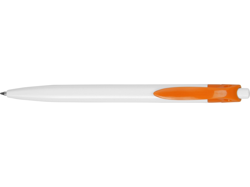 Стильная пластиковая ручка с ярким цветным клипом и белым корпусом отлично подойдет для нанесения логотипов и рекламной информации. Нажимной механизм.