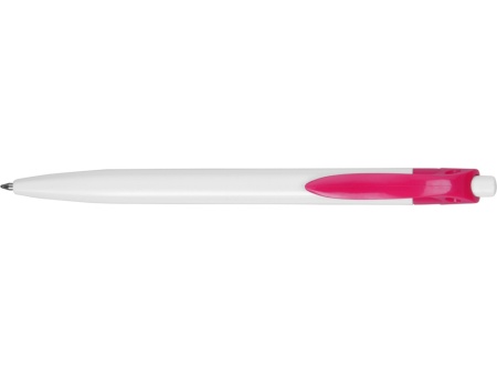 Стильная пластиковая ручка с ярким цветным клипом и белым корпусом отлично подойдет для нанесения логотипов и рекламной информации. Нажимной механизм.