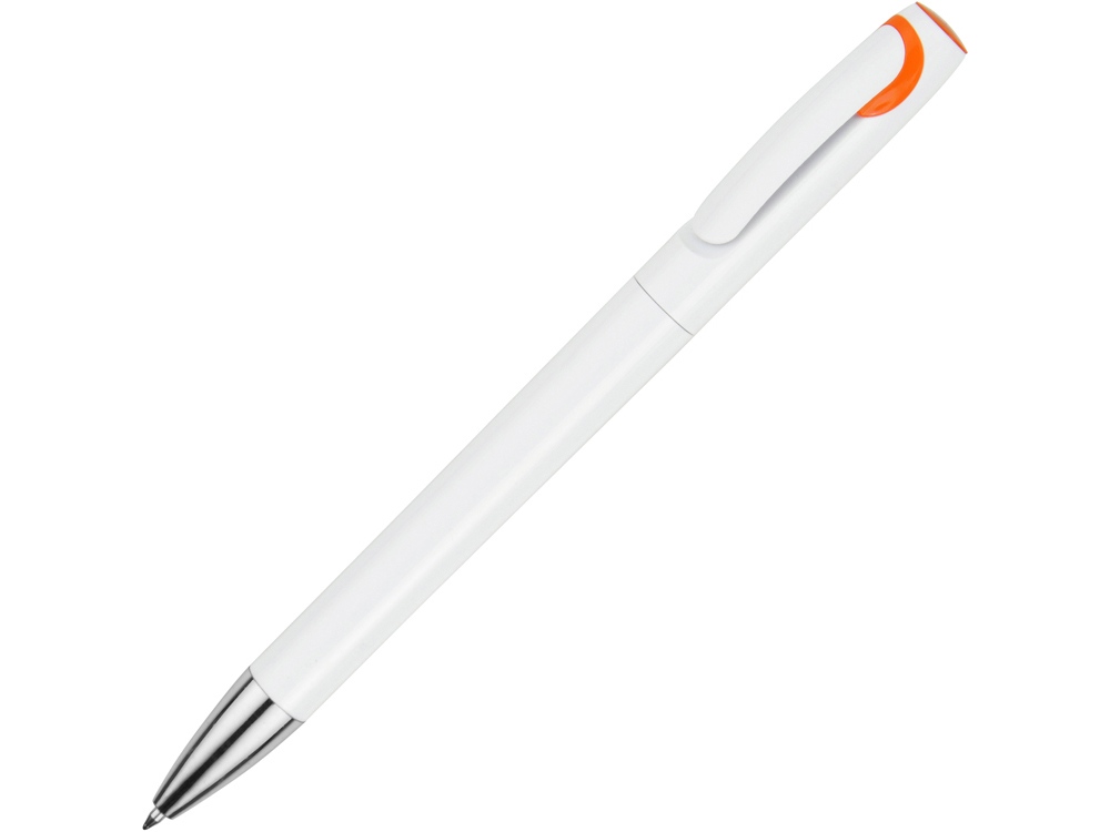 Белая ручка с серебристым носиком и цветным акцентом станет неотъемлемым элементом вашей рекламной кампании. На широкий клип можно нанести логотип, а на пластиковый корпус – слоган. Ручка снабжена надежным поворотным механизмом и доступна в 6 расцветках.