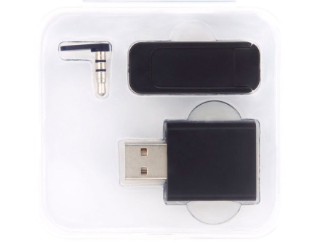 Комплект для обеспечения конфиденциальности цифровых данных с блокиратором данных USB, блокиратором веб-камеры и блокиратором аудиоразъема. Защитник данных USB предотвращает случайный обмен данными при подключении мобильного устройства к компьютеру или общественной зарядной станции. Это изделие блокирует любую передачу данных во время зарядки устройства, предотвращая кражу данных или установку вредоносных программ. Блокиратор веб-камеры можно прикрепить перед веб-камерой ноутбука, чтобы заблокировать нежелательный доступ к веб-камере. Блокиратор аудиоразъема можно поместить в AUX-порт устройства, чтобы избежать прослушивания разговоров третьими лицами. Поставляется в защитном футляре. Пластик ABS.