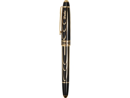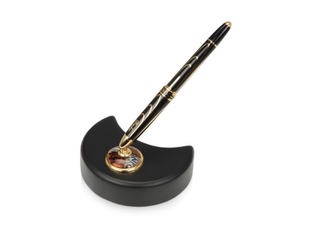 Отличный подарок для успешных мужчин или женщин. Набор включает в себя подставку с держателем и ручку-роллер. Выполненный в строгом стиле, набор прекрасно впишется в интерьер рабочего кабинета.