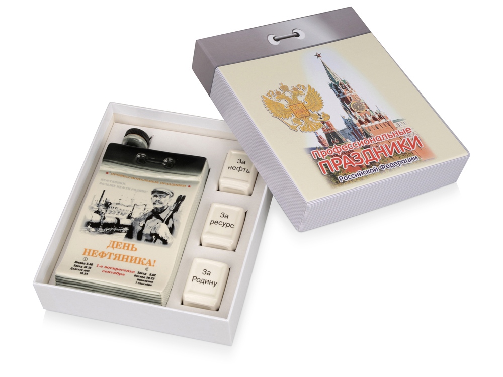 Стильный набор из штофа и рюмок стилизованный под профессиональный календарь станет креативным подарком к профессиональному празднику. Штоф и рюмки изготовлены из высококачественного фарфора. На каждой рюмке написано оригинальное послание-тост. Упакован подарок в коробку стилизованную под календарь. Идеальный и оригинальный подарок, чтобы поздравить сотрудника или руководителя с профессиональным праздником