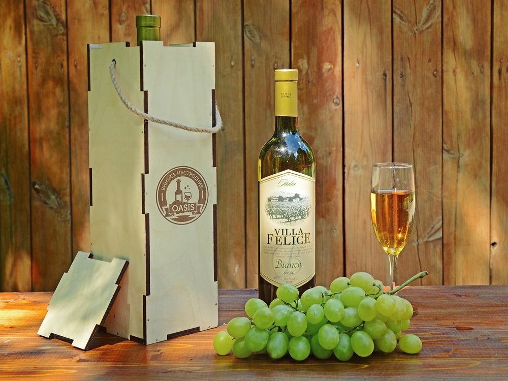 Деревянная коробка-пенал подчеркнет эстетическую значимость вашего сувенира. Она проста в использовании, крышка упаковки легко закрывается надежно фиксирует бутылку. Таким образом, ваш презент переходит из обычного подарка в разряд премиум и приобретает благородный и презентабельный вид.