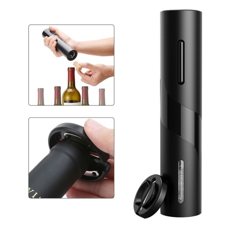 В комплект входит винный штопор и нож для фольги, имеется руководство по эксплуатации. Винный штопор позволяет быстро открыть бутылку вина. Работает от батареек типа АА (в комплект не входят).