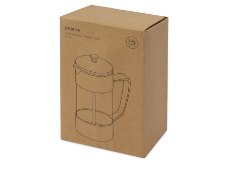 Френч-пресс Intense - незаменимый кухонный прибор, который подойдет не только для дома, но и офиса. Он имеет внушительный объем, которого хватит, как минимум, на 3 чашки чая или кофе. Легкость заваривания напитков во френч-прессе является отличным преимуществом при выборе корпоративного подарка. Более того, эта модель имеет значительную площадь для нанесения логотипа компании. Внешний корпус изготовлен из прочного пластика, емкость из жаропрочного боросиликатного стекла, устойчивого к перепадам температур. Френч-пресс Intense поставляется в крафтовой коробке с дизайном. Максимально рекомендованная температура воды - 120℃. Можно использовать в посудомоечной машине.
