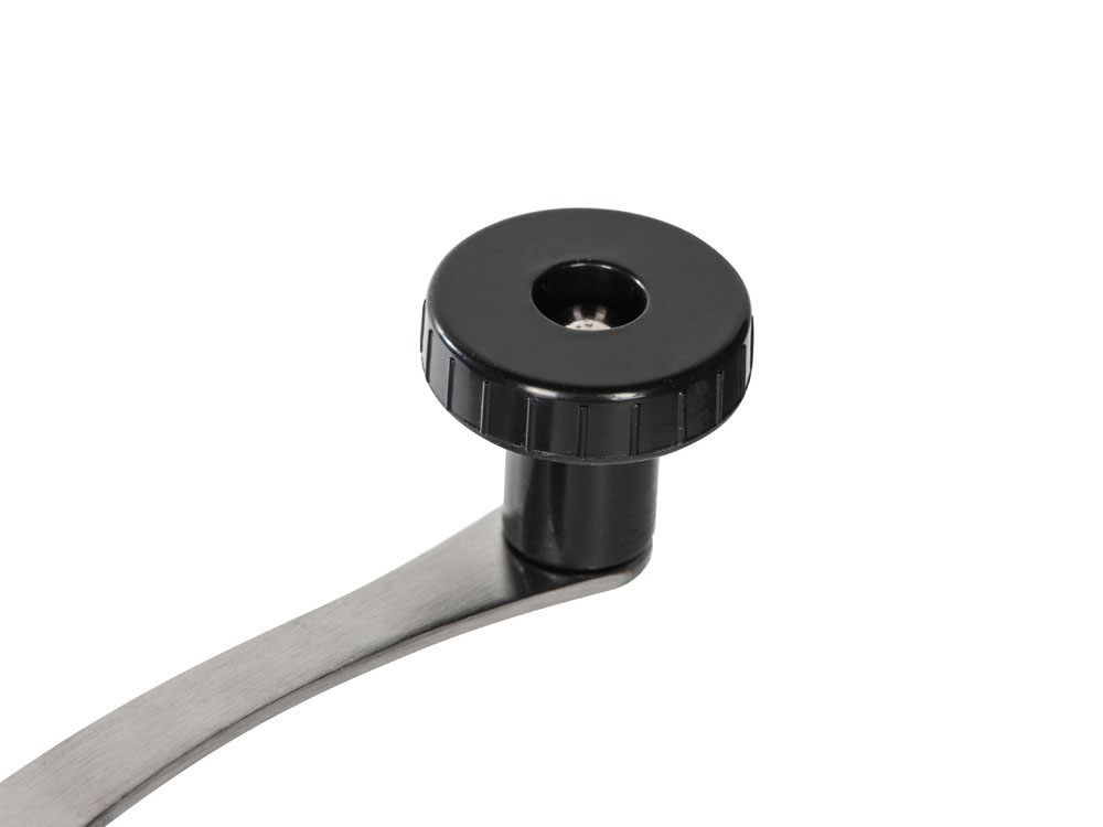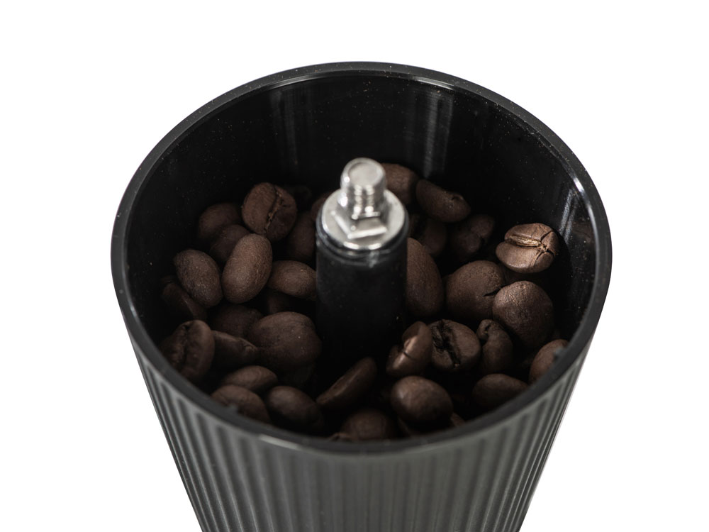 Удобная ручка делает процесс перемалывания простым, не требующим приложения большого количества сил, а рифленая поверхность верхнего резервуара — не дает ладоням скользить.