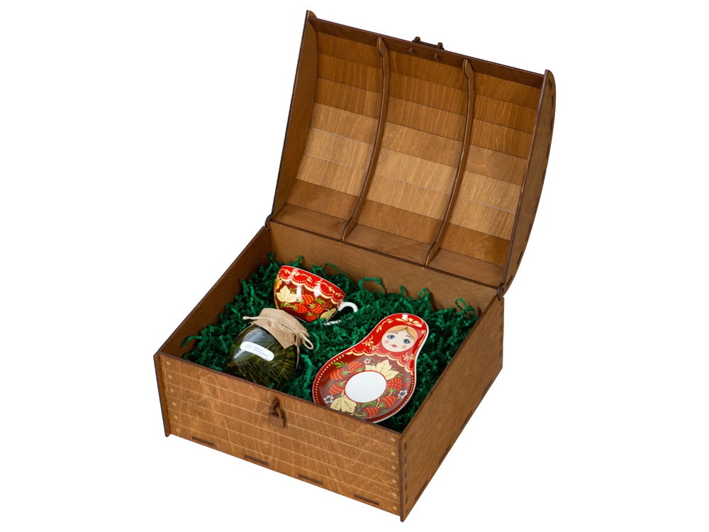 Набор поставляется в большой деревянной коробке в виде сундука с замочком.