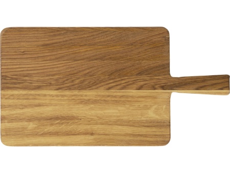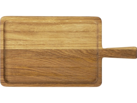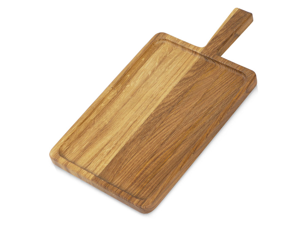 Доска обладает углублением и небольшими бортиками для стока жидкости из нарезаемых продуктов. Благодаря ручке её удобно использовать в качестве подноса или блюда.