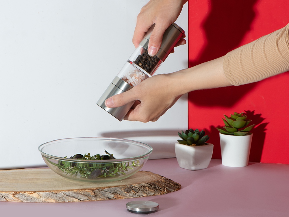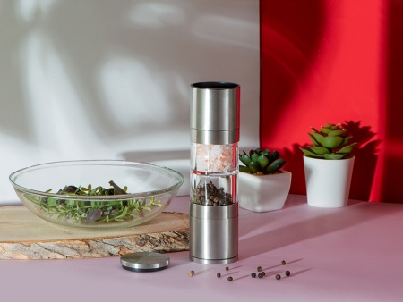 Главный плюс мельницы Twin — сразу два отсека для специй, благодаря чему вы сможете сэкономить место на кухне, объединив в одном устройстве сразу два вида приправ. Керамические жернова не боятся коррозии, а высококачественная нержавеющая сталь обеспечивает изделию длительный срок жизни. Кроме того, есть и возможность управления степенью помола при помощи тумблера.