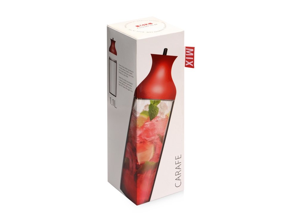 Верх графина легко откручивается и Вы можете наполнить его кубиками льда или фруктами. При наливании напиток фильтруется благодаря узкому отверстию сверху. Объем 1,1л.