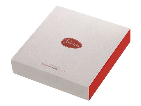 Набор для сыра не изменяет общему стилю Fabrizio: доска и три сырных ножа упакованы в чехол из искусственной кожи, который прекрасно сочетается по текстуре и цвету с другими изделиями серии. Чехол на молнии раскрывается как папка, надежно защищая принадлежности от механических повреждений и позволяя компактно и удобно хранить принадлежности. Для подвешивания и переноски предусмотрена текстильная петля на корешке. Внутри чехол имеет фиксирующие резинки для каждого ножа и доски.