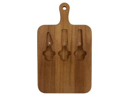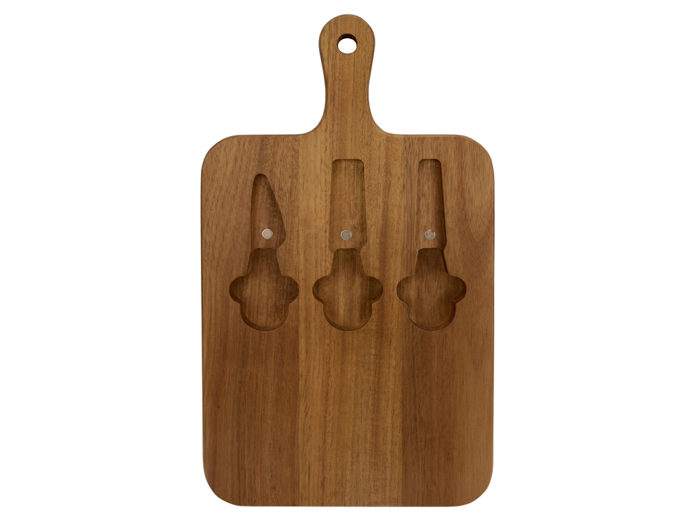 Набор состоит из доски, двух ножей и вилки для сыра.