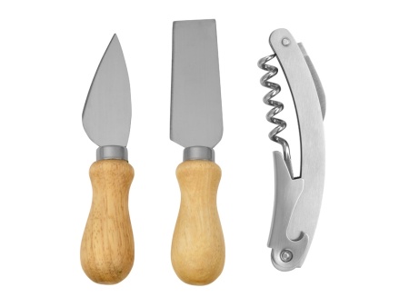 Набор Mino для вина и сыра. Коробка для вина со штопором и деревянная доска с двумя ножами для сыра. Вино и сыр не входят в набор. Набор упакован в деревянную коробку. Дерево и нержавеющая сталь.