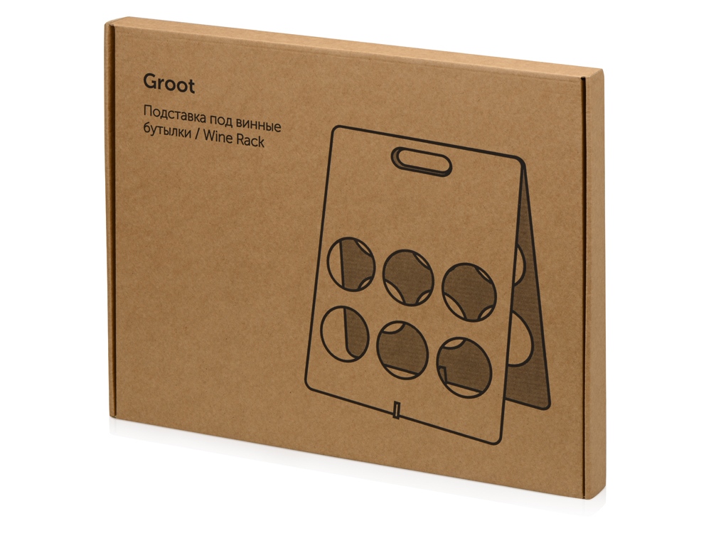 Подставка под винные бутылки Groot – незаменимый аксессуар, который пригодится на любом корпоративном мероприятии и украсит праздничный стол. Она изготовлена из легкого, но при этом крепкого материала и имеет удобную ручку для переноски. Подставка выигрышно подчеркнет символику компании с помощью гравировки благодаря большому пространству для брендирования. В комплекте идет индивидуальная крафтовая коробка со стильным дизайном.