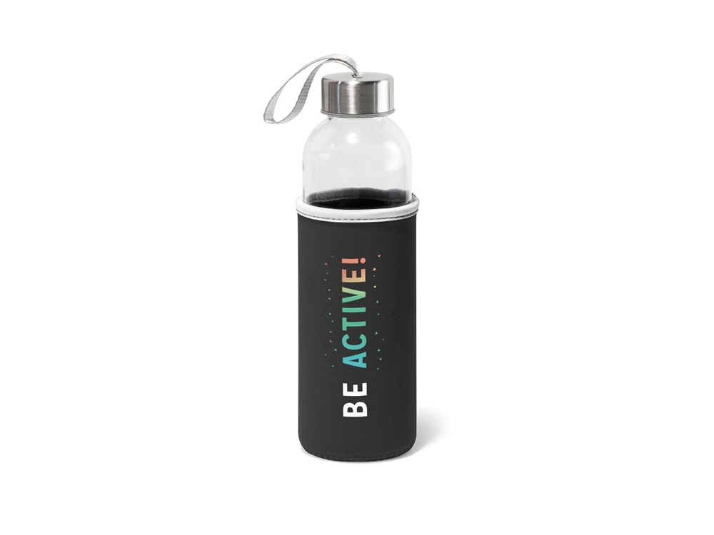 Бутылка для спорта из стекла и нержавеющей стали, емкостью до 500 мл. Поставляется с чехлом soft shell.
