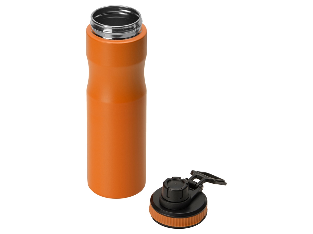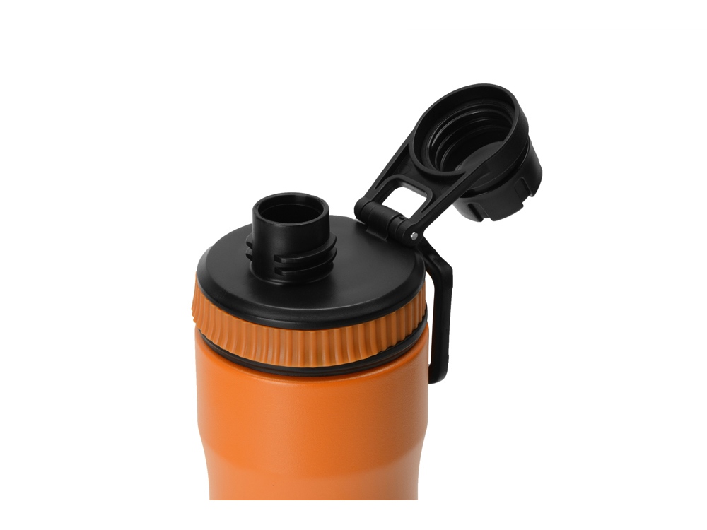 Крышка оснащена складной ручкой-держалкой, которая может быть использована для подвешивания или переноски, а также нетеряемым колпачком. Широкое питьевое отверстие позволяет быстро утолить жажду во время занятий спортом. Рельефное силиконовое кольцо по краю крышки поможет вам быстро и легко отвинтить ее от бутылки.