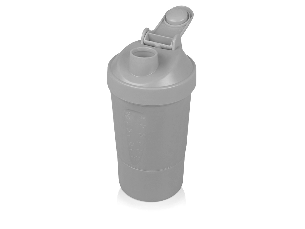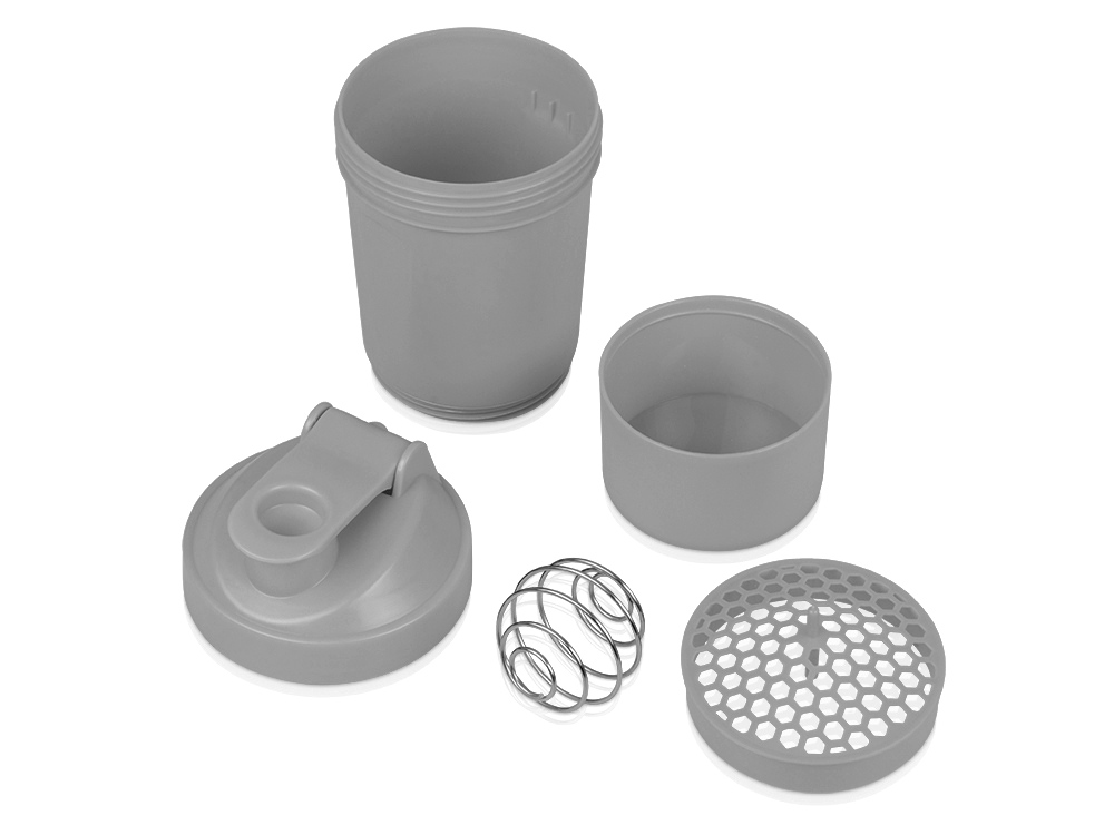 Шейкер для спортивного питания - это один из необходимых аксессуаров для спортсменов и людей, ведущих активный образ жизни. В нем можно приготовить протеиновый коктейль или фруктовый напиток. Шейкер классической формы, он удобно лежит в руке, к донышку прикручивается емкость для смешивания (таблетница), в которой можно хранить спортивные добавки: протеиновый порошок, витамины и другие концентраты. Внутри колбы имеется пластиковая сетка, чтобы процеживать спортивный напиток, а также металлический размешиватель, который растворяет порошок в напитке без комочков. Объем - 400мл. Шейкер изготовлен из пищевого пластика, он герметичен и легко моется.