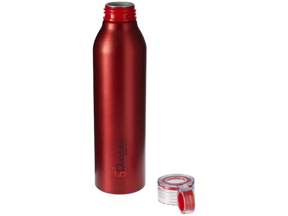 Спортивная алюминиевая бутылка Grom. Одинарные стенки. Откручивающаяся крышка с защитой от протекания и цветным акцентом. Удобная в пути. Объем 650 мл. Алюминий.