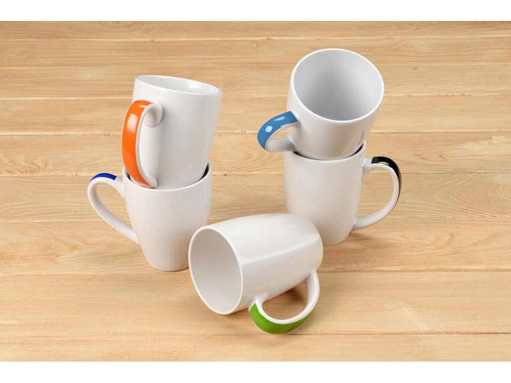 Не знаешь что дарить? Дари кружку! Многие выбирают подарок именно так. Объемная керамическая кружка на 320 мл - вещь действительно нужная и полезная. Яркая цветная полоса на ручке радует глаз, а на белый корпус можно нанести изображение: логотип компании или напоминание о событии. Прекрасный промо-сувенир для любой акции.