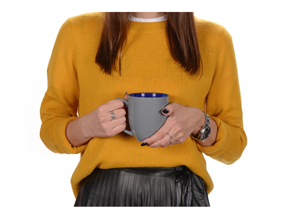Кружка выполнена из керамики, её удобно держать в руке за счет большой ручки. Большой объём позволит наслаждаться любимым напитком в течение долгого времени.