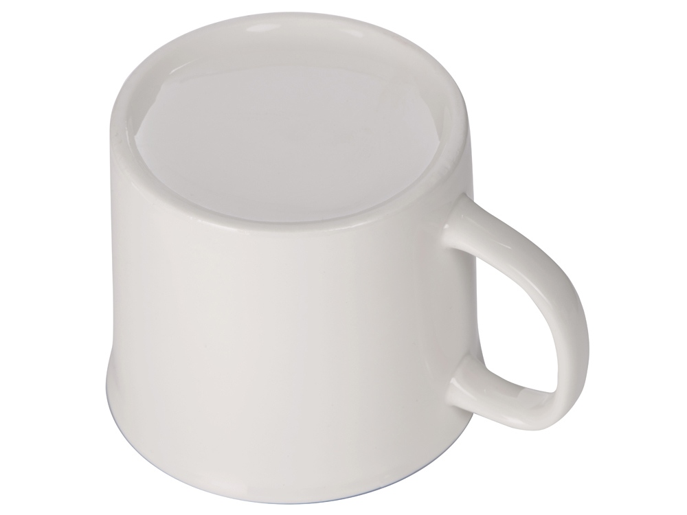 Кружка из костяного фарфора с выраженным рельефным ободком, окаймленным цветной контрастной полосой. Цвет полосы можно органично сочетать с цветом нанесенного логотипа, что придаст дизайну конечного продукта цельность облика.