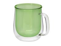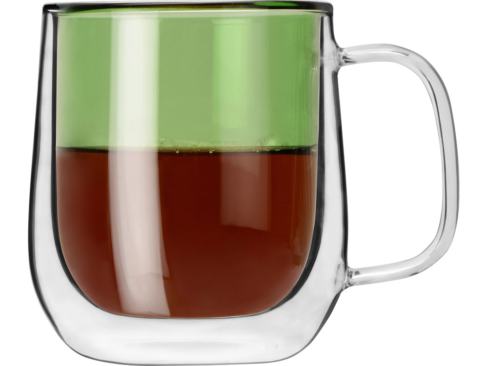Кружка выполнена из боросиликатного стекла, которое отличается большей прочностью и легкостью, нежели стекло обычное, но при этом столь же безопасно для человека. В этой кружке можно сервировать и горячие, и холодные напитки, поскольку боросиликатное стекло стойко к высоким температурам.