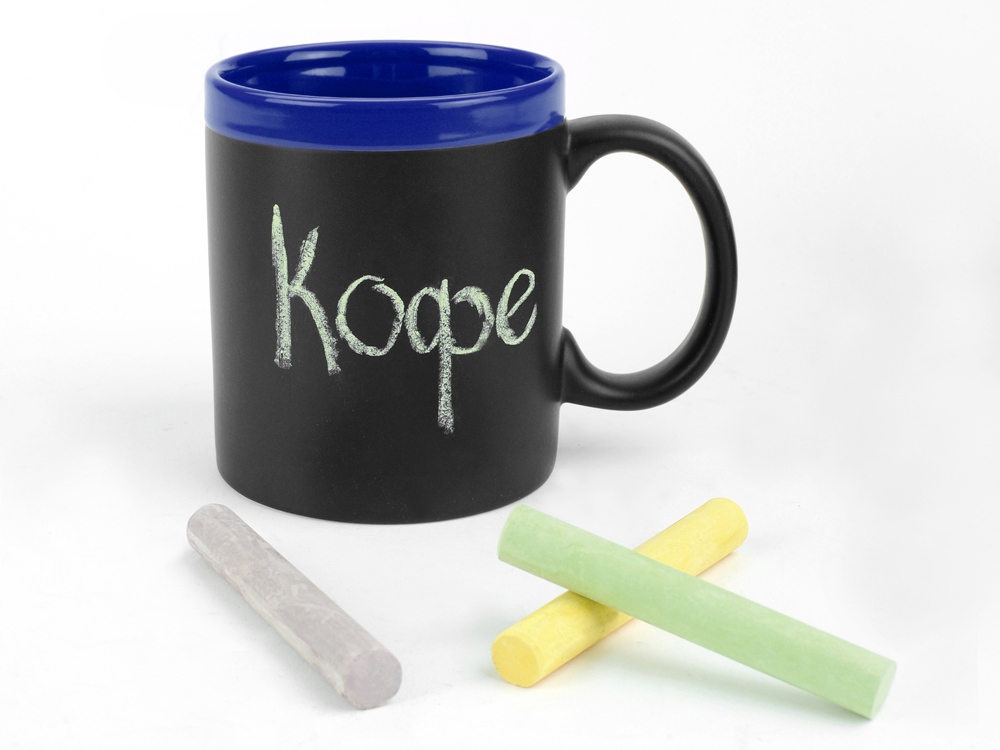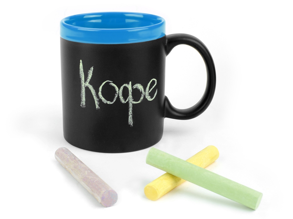 Оригинальная кружка на 320 мл имеет специальную поверхность, на которой можно рисовать мелками, тем самым меняя дизайн кружки каждый раз. Необычный и полезный подарок для родных и друзей. Мелки в комплект не входят.