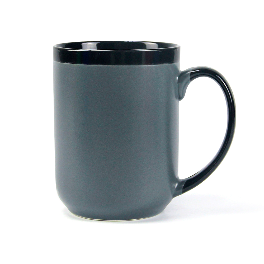 Глянцевая черная краска на ручку и край кружки наносится вручную. Возможна неровная линия стыка основного цвета кружки и черного цвета ручки и края.