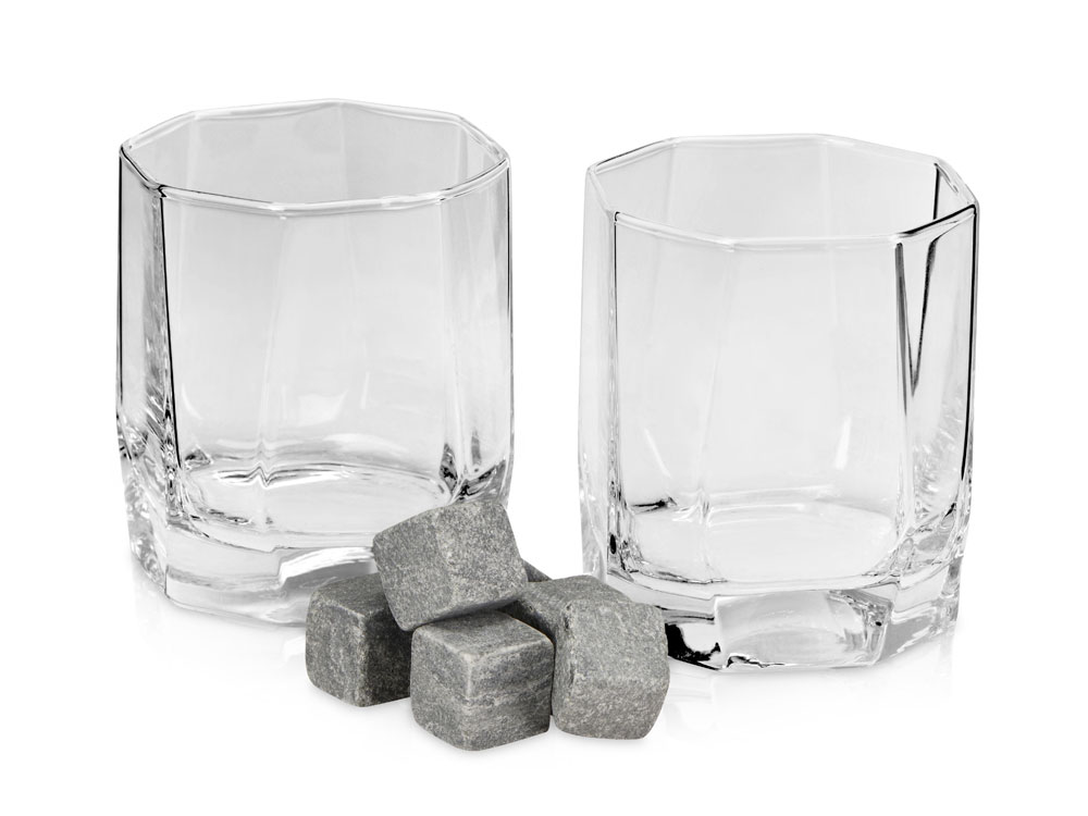 Перед использованием вымойте камни под проточной водой, чтобы удалить с них пыль или другие загрязнения, высушите полотенцем и поместите камни в морозильную камеру на пару часов, а затем используйте вместо льда для охлаждения напитков, чтобы получить неразбавленный холодный виски. В комплекте : два бокала для виски, 6 камней из талькохлорита, бархатный мешочек.