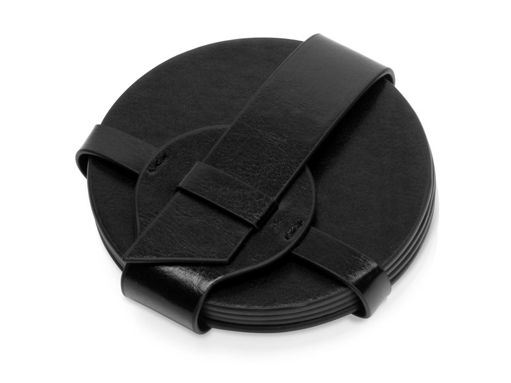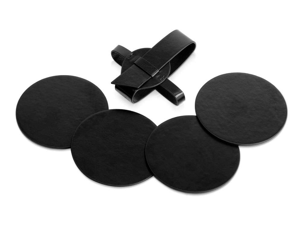 Набор состоит из четырех подставок и ремня-чехла, с помощью которого костеры очень удобно хранить в одном месте. Подставки круглой формы идеально подойдут для бокалов разного диаметра. Универсальная форма, легко моющийся материал, персонализация на самих костерах, а также ремешке.