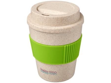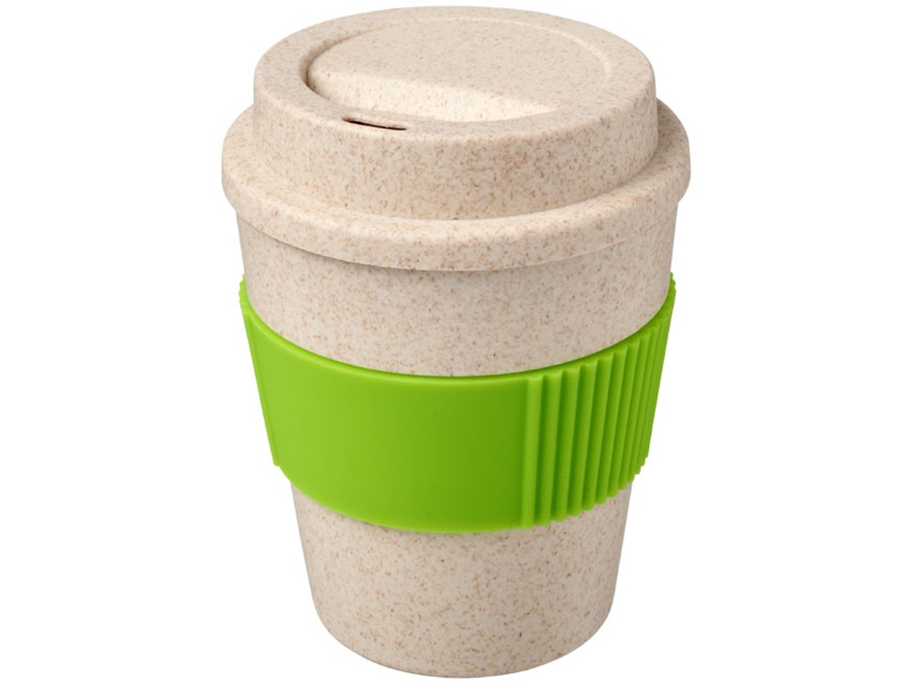 Стакан из пшеничной соломы Oka имеет в комплекте удобную закручивающуюся крышку - его удобно носить с собой. Изготовлен на 50 % из пшеничного соломенного волокна и на 50 % – из полипропилена. На стакане - силиконовая манжета в контрастном цвете. Подходит для горячих и холодных напитков, идеально подойдет практически для любой кофеварки. Объем - 350 мл.