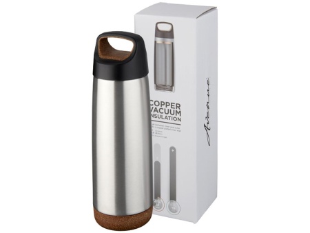 Спортивная медная бутылка с вакуумной изоляцией Valhalla объемом 600 мл. Двустенная вакуумная конструкция из нержавеющей стали с медной изоляцией позволит вашему напитку оставаться холодным в течение 48 часов и горячим - как минимум 12 часов. Кроме того, конструкция препятствует образованию конденсата на внешней стороне бутылки. Закручивающаяся крышка с элементами из пробки и противоскользящее дно. Объем - 600 мл. Стальной корпус с пробкой.